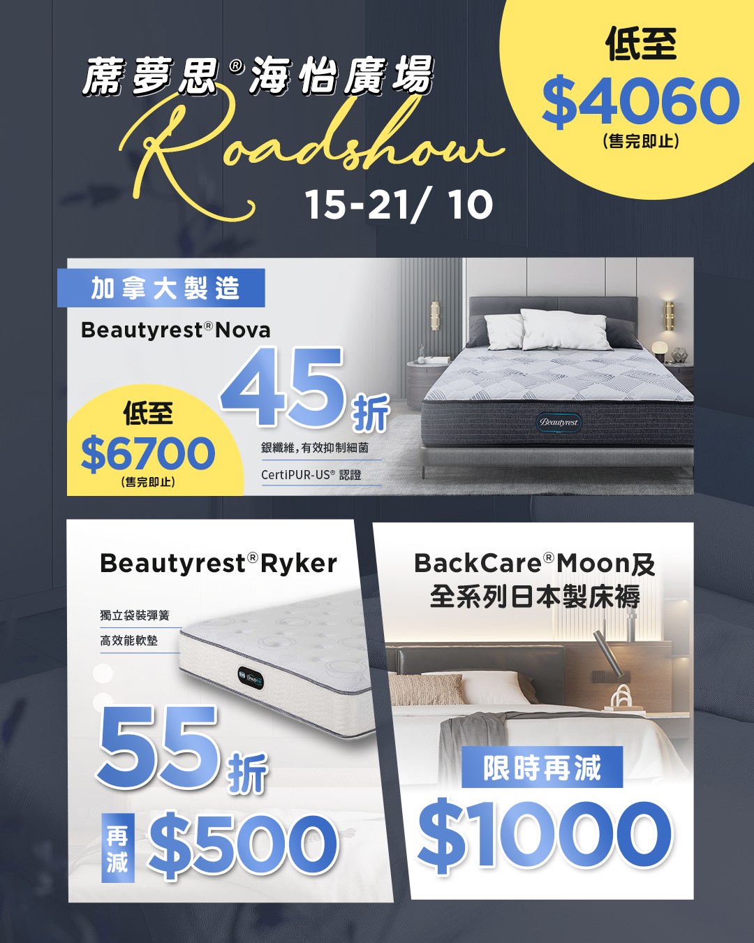 BackCare® Moon and the full range of Japanese-made mattresses with an additional $1,000 off