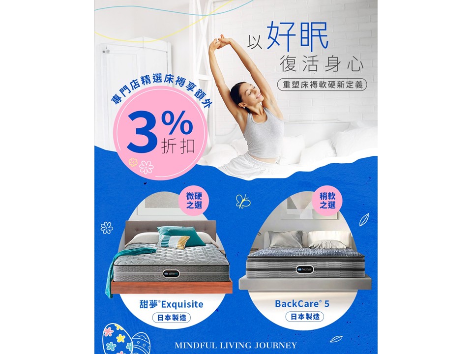 4月專門店限定優惠 以下床褥額外再享 3% off: