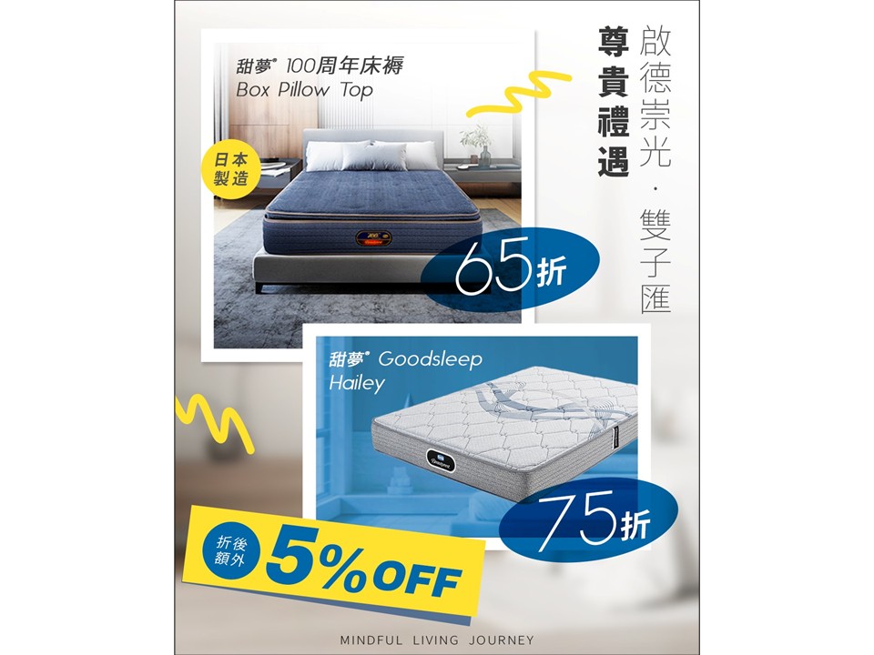 🛏️ 甜夢® 100周年 Box Pillow Top|65折 + 額外95折